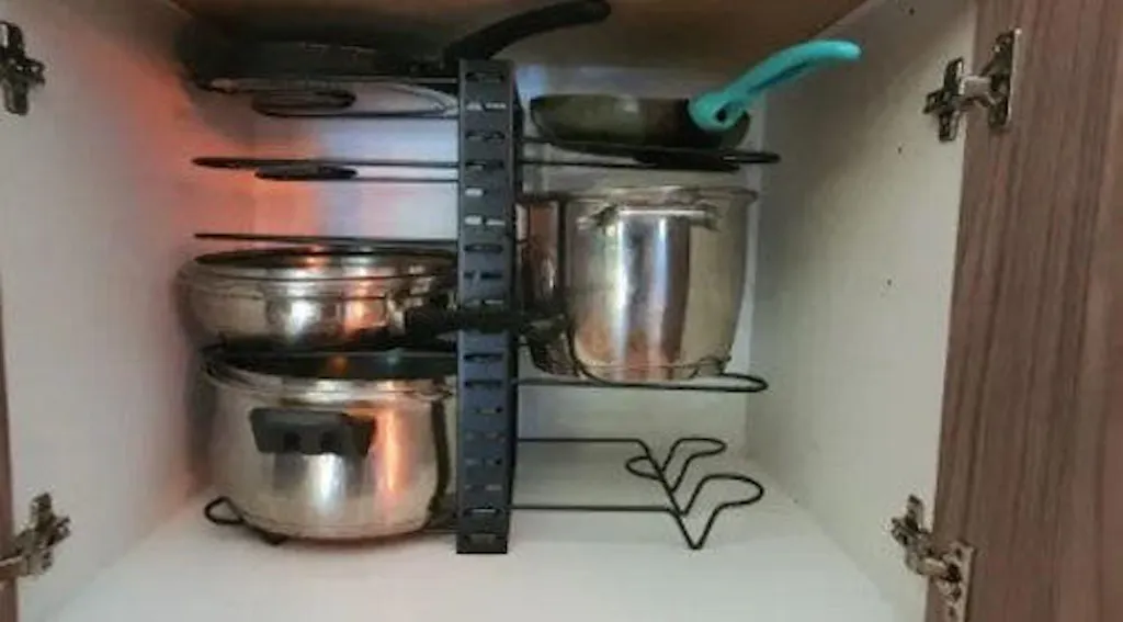 Tired of digging through chaotic cabinets for that perfect pan? You're not only getting an organizer but also a space-saving marvel that maximizes your kitchen's potential. This organizer doesn't just store; it elevates every cooking session. Imagine, no more shuffling around; just easy, joyful cooking.